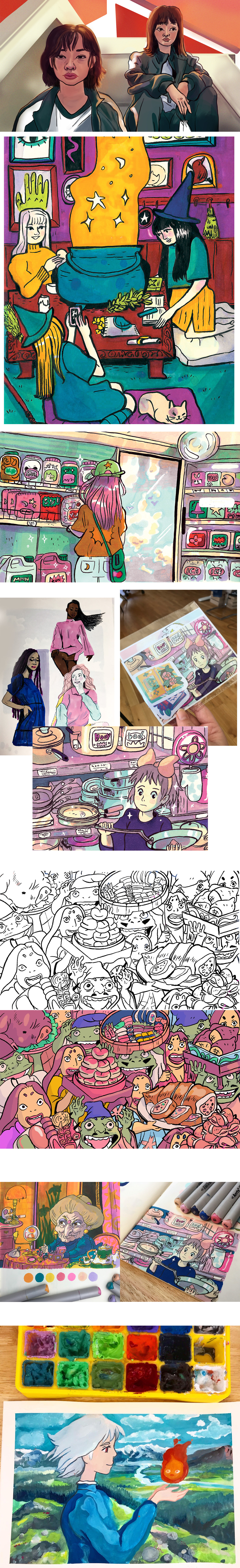 Drawings, paintings and designs; some digital, some paintings/traditional.